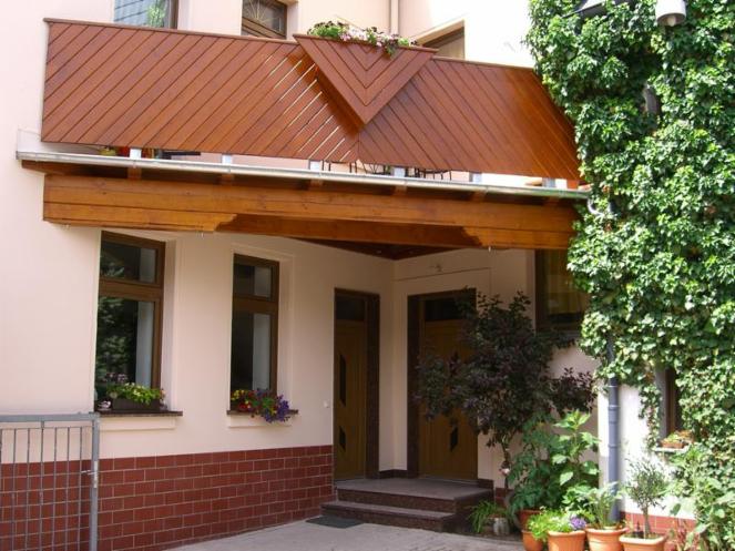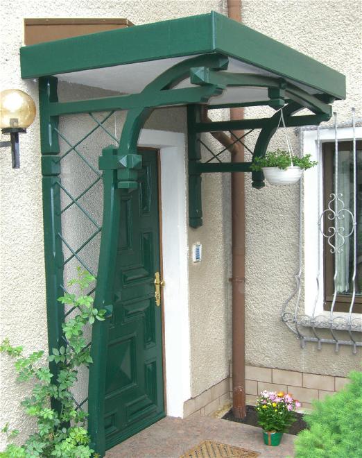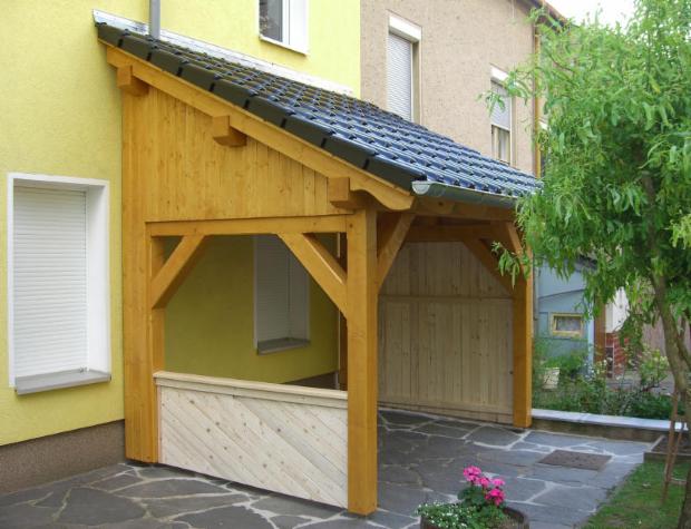 Aus mas. Holzbalken gearbeitet , als Haustürvordach oder als