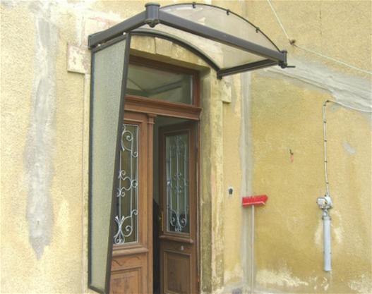 Vordach aus Aluminium mit Acrylglasabdeckung und seitlichem Windfang