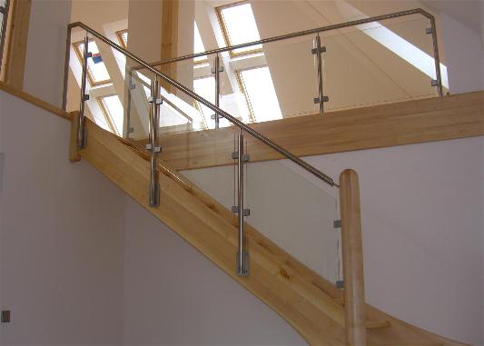 in Ahorn mit Edelstahlgeländer und ESG Verglasung