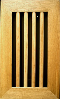 Gußheizkörperverkleidung mit Stabprofil und Abdeckung in Massivholz