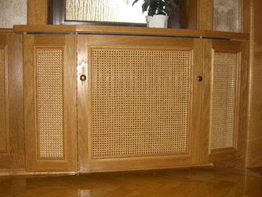 Heizungsverkleidung aus einem Flechtrohrgewebe - offenes Wabengewebe
