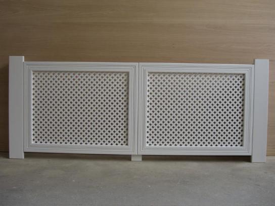 Flachheizkörperverkleidung mit Diagonalgitter aus mas. nord. Kiefer